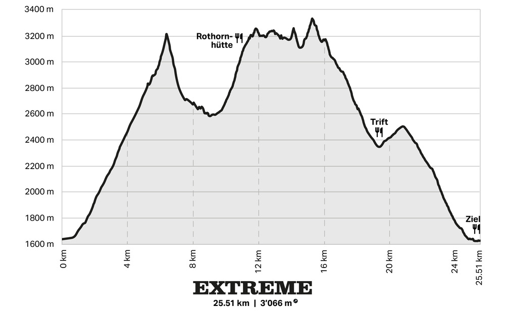 EXTREME is the highlight of the Matterhorn Ultraks – a challenging route that requires proven mountaineering and high-altitude experience. The route passes through mountain lakes, along cliffs and over the glacier. The race is part of the Merrell Skyrunner® World Series.